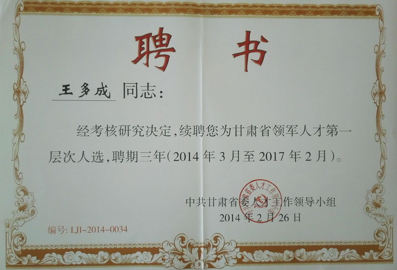2014年甘肅省第一層次領軍人才聘…